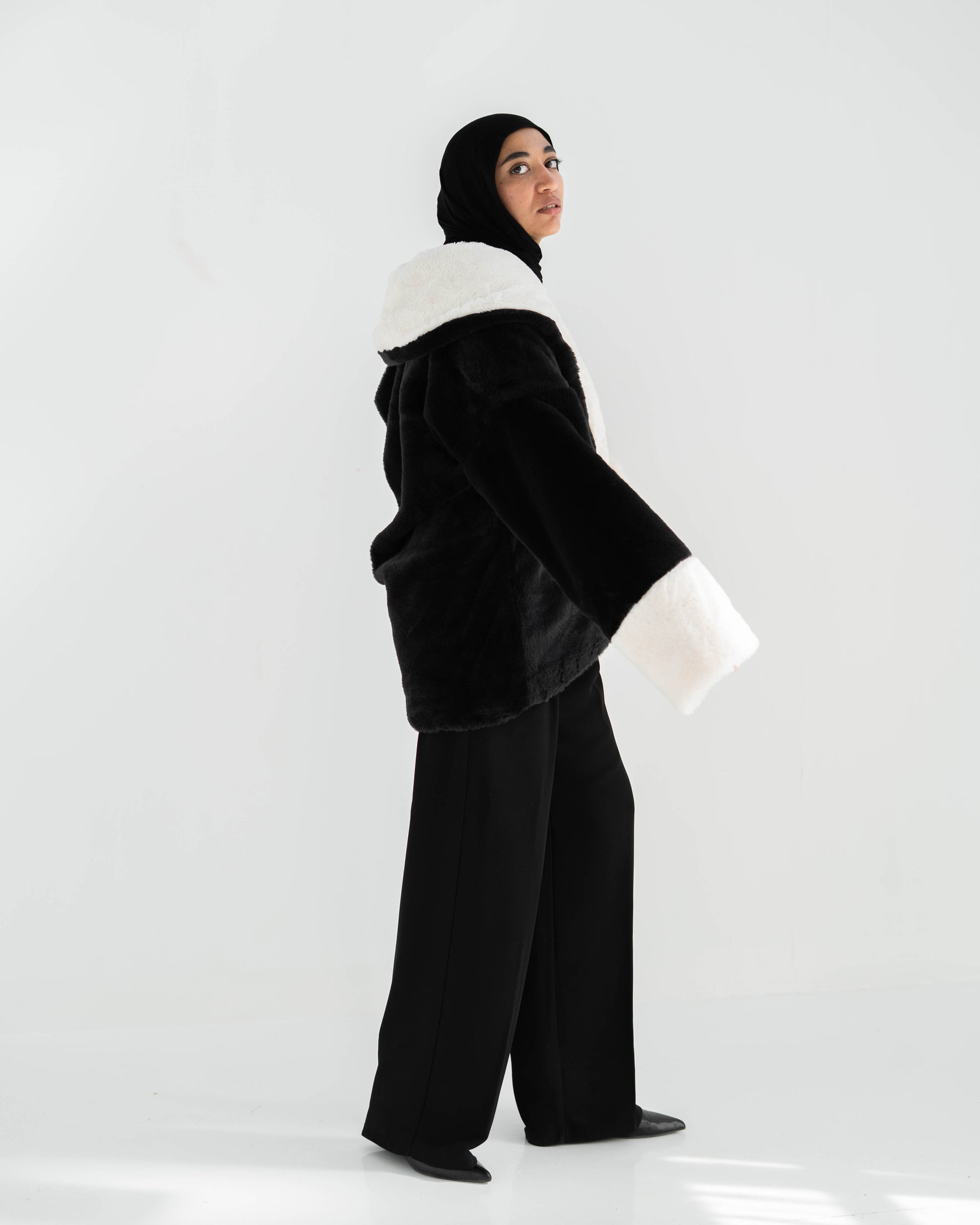 Stay warm and stylish with these luxurious faux fur jackets, available in timeless black and soft white. Featuring plush, high-quality fur with a contrasting trim, these jackets provide both comfort and sophistication. The open-front design allows for easy layering, making it the perfect outerwear piece for chilly evenings or casual outings. With their soft and cozy feel, these faux fur jackets add a touch of elegance to any outfit, whether paired with jeans for a relaxed look or dressed up for special occasions. A must-have for the colder months.